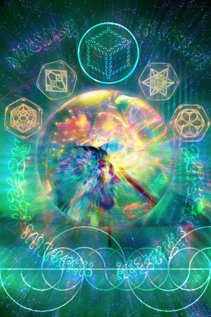 • En el Quinto Universo Armónico no hay dimensionalización en formas de materia, por lo tanto no hay cuerpo planetario ni formas humanas. Esta área de quinta densidad se llama premateria, dado que la consciencia no se manifiesta en materia. Los tres campos primarios de luz y sonido contienen las expresiones de rayos del Arco Madre, Arco Padre y Sol del Rayo Dorado de Kristos, la trinidad de la Fuente de Dios, a partir de la cual se crean todas las formas biológicas en todos los Universos Armónicos.